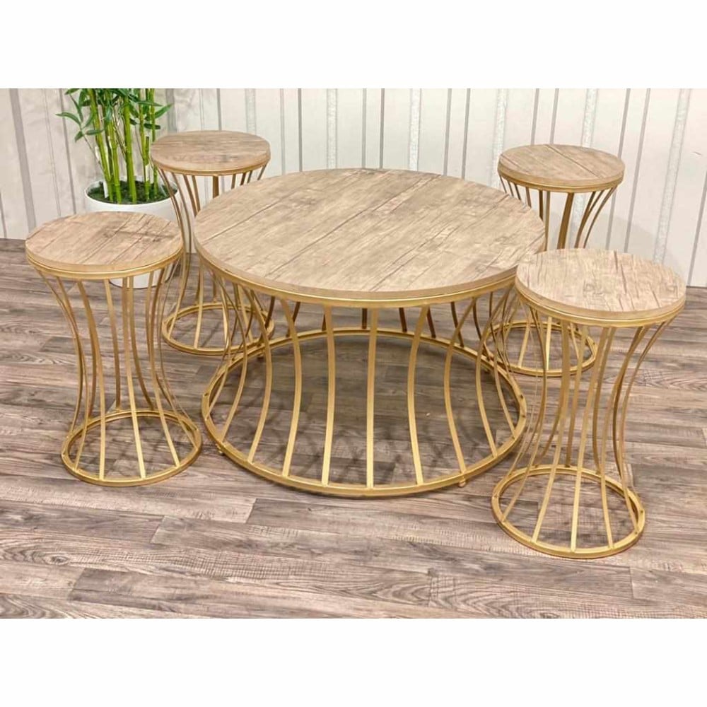 تباهي بطريقة تقديم فاخرة مع طقم طاولات جانبية فريدة. تتميز الطاولات بسطح بيضاوي أنيق مصنوع من خشب عالي الجودة متصّل في الأطراف بقاعدة ذهبية لافتة للأنظار. يتكوّن الطقم من طاولتين متداخلتين بمقاسات مختلفة 65*45*50 سم و55*36*40 سم