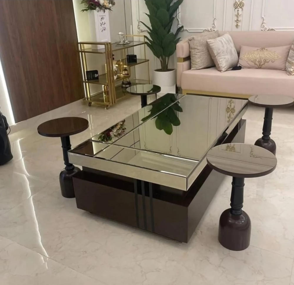 طاولة كبيرة مقاس 120 طول و 70 عرض و 50 ارتفاع مع 6 طاولات خدمة نفس الصورة المرسلة من العمبل